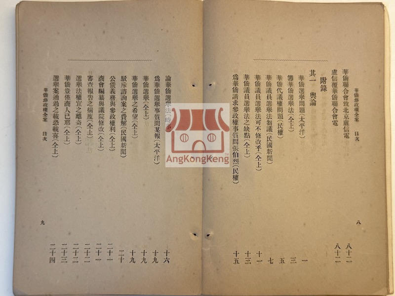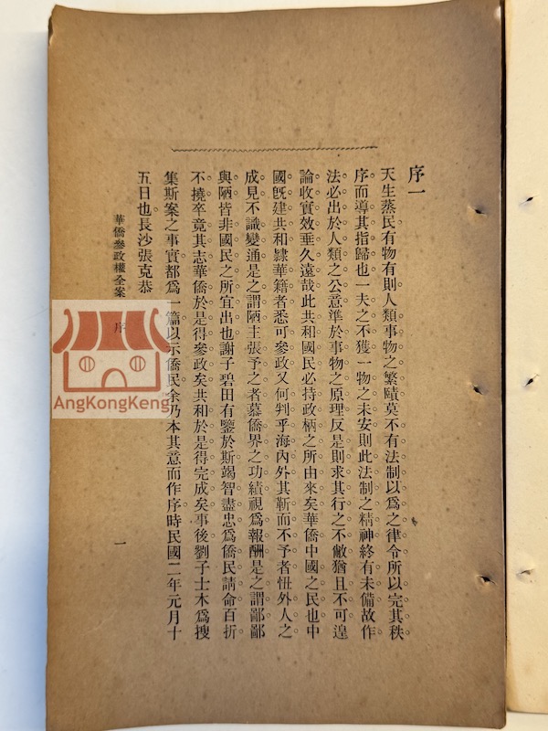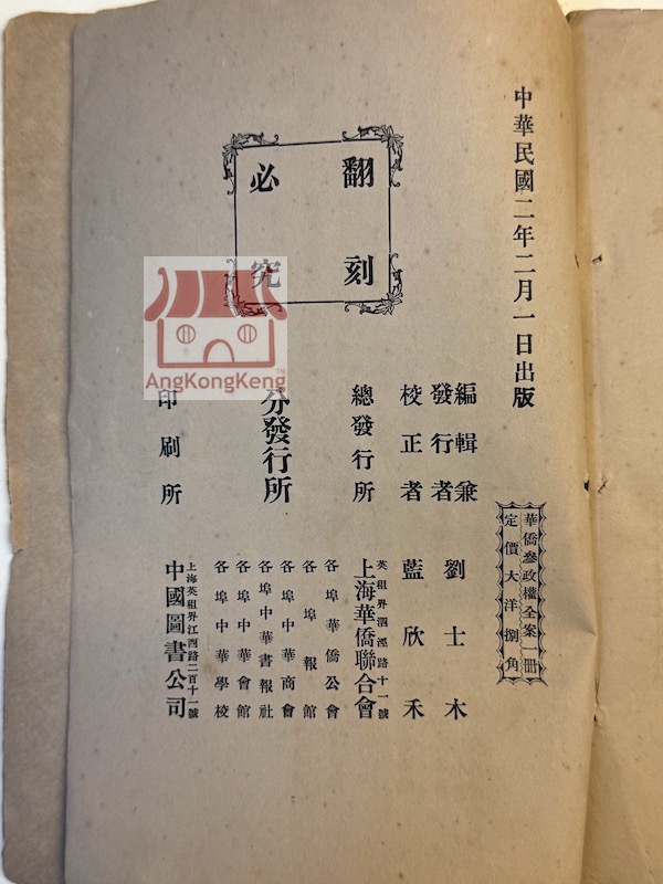 華僑參政權全案 1913年出版 編輯兼發行者:劉士木